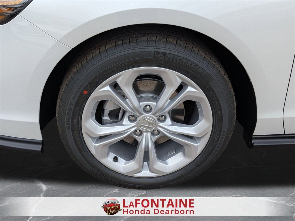 Home of the LaFontaine family deal! Check out all the features on this gorgeous 2025 Honda Accord 4 Speakers, 4-Wheel Disc Brakes, ABS brakes, Adaptive Cruise Control: Adaptive Cruise Control (ACC) with Low-Speed Follow, Air Conditioning, Alloy wheels, AM/FM radio, Apple CarPlay/Android Auto, Auto High-beam Headlights, Automatic temperature control, Brake assist, Bumpers: body-color, Compass, Delay-off headlights, Driver door bin, Driver vanity mirror, Dual front impact airbags, Dual front side impact airbags, Electronic Stability Control, Emergency communication system: HondaLink Assist, Exterior Parking Camera Rear, Fabric Seat Trim, Four wheel independent suspension, Front anti-roll bar, Front Bucket Seats, Front Center Armrest, Front reading lights, Fully automatic headlights, Illuminated entry, Knee airbag, Lane departure: Lane Keeping Assist System (LKAS) active, Low tire pressure warning, Occupant sensing airbag, Outside temperature display, Overhead airbag, Overhead console, Panic alarm, Passenger door bin, Passenger vanity mirror, Power door mirrors, Power steering, Power windows, Radio data system, Radio: 160-Watt Audio System, Rear anti-roll bar, Rear reading lights, Rear seat center armrest, Rear side impact airbag, Rear window defroster, Remote keyless entry, Security system, Speed control, Speed-sensing steering, Speed-Sensitive Wipers, Steering wheel mounted audio controls, Tachometer, Telescoping steering wheel, Tilt steering wheel, Traction control, Trip computer, Variably intermittent wipers, and Wheels: 17 x 7.5J Blade Silver.