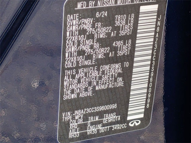 Check out this good-looking 2025 INFINITI QX80 with the following amenities AUTOGRAPH Exterior Package (Dark Matte Rear Bumper Protector and Silver Cross Bars), Air Conditioning, Apple CarPlay/Android Auto, Auto High-beam Headlights, Auto-dimming Rear-View mirror, Auto-leveling suspension, Climate Controlled Front Bucket Seats w/Massage, Front Bucket Seats, Fully automatic headlights, Heads-Up Display, Heated door mirrors, Heated front seats, Heated rear seats, Heated steering wheel, Leather steering wheel, Low tire pressure warning, Memory seat, Power driver seat, Power Liftgate, Power moonroof, Radio: Klipsch Reference Premiere Audio System, Rain sensing wipers, Rear air conditioning, Reclining 3rd row seat, Remote keyless entry, Steering wheel mounted audio controls, Turn signal indicator mirrors, Ventilated front seats, Ventilated rear seats, 3rd row seats: bench, 4-Wheel Disc Brakes, ABS brakes, Adaptive suspension, Alloy wheels, AM/FM radio: SiriusXM with 360L, Anti-whiplash front head restraints, Audio memory, Auto tilt-away steering wheel, Auto-dimming door mirrors, Automatic temperature control, Brake assist, Bumpers: body-color, Center Front Spoiler, Compass, Delay-off headlights, Driver door bin, Driver vanity mirror, Dual front impact airbags, Dual front side impact airbags, Electronic Stability Control, Emergency communication system: INFINITI InTouch, Four wheel independent suspension, Front anti-roll bar, Front Center Armrest, Front dual zone A/C, Front reading lights, Garage door transmitter: myQ Connected Garage, Genuine wood dashboard insert, Genuine wood door panel insert, HVAC memory, Illuminated entry, Knee airbag, Literature Kit, Navigation system: Google Built-in, Occupant sensing airbag, Outside temperature display, Overhead airbag, Overhead console, Panic alarm, Passenger door bin, Passenger vanity mirror, Power door mirrors, Power passenger seat, Power steering, Power windows, Premium Paint, Radio data system, Rear anti-roll bar, Rear reading lights, Rear seat center armrest, Rear window defroster, Rear window wiper, Security system, Semi-Aniline Premium Leather Seating Surfaces, Speed control, Speed-sensing steering, Split folding rear seat, Spoiler, Steering wheel memory, Tachometer, Telescoping steering wheel, Tilt steering wheel, Traction control, Trip computer, Variably intermittent wipers, and Wheels: 22 x 8 Cast Aluminum Alloy.
