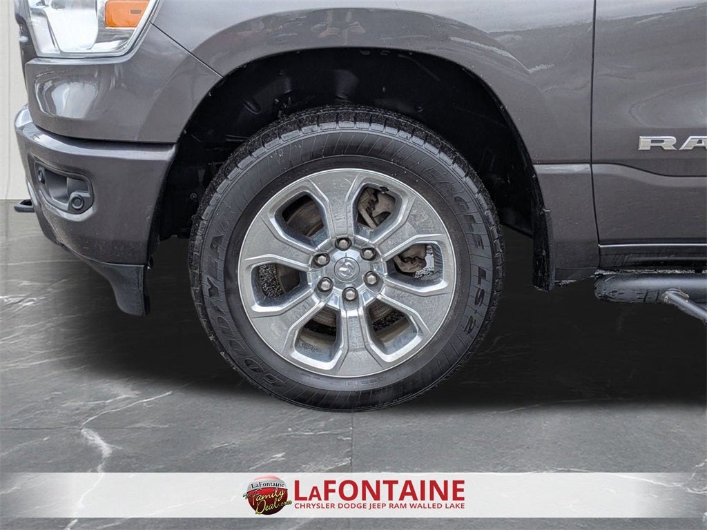Handsfree Phone and Audio, Parksense Front and Rear Park Assist, Remote Start System, Ready–Alert Braking, Rain Brake Support, 1500 Big Horn/Lone Star, 4D Crew Cab, HEMI 5.7L V8 Multi Displacement VVT, 8-Speed Automatic, 4WD, Granite Crystal Metallic Clearcoat, Black Cloth, 115V Auxiliary Power Outlet, 115V Auxiliary Rear Power Outlet, 8.4 Touchscreen Display, Add Class IV Receiver Hitch, Air Conditioning ATC w/Dual Zone Control, Apple CarPlay, Auto-Dimming Exterior Driver Mirror, Auto-Dimming Rear-View Mirror, Big Horn Level 2 Equipment Group, Brake assist, Class IV Receiver Hitch, Dampened Tailgate, Dual front impact airbags, Dual front side impact airbags, E-Locker Rear Axle, Engine Block Heater, Exterior Mirrors w/Memory, Front Extra HD Shock Absorbers, Front fog lights, Fully automatic headlights, Google Android Auto, Heated Front Seats, Heated Steering Wheel, Low tire pressure warning, North Edition, Occupant sensing airbag, Overhead airbag, ParkSense Front/Rear Park Assist w/Stop, ParkView Rear Back-Up Camera, Power 8-Way Driver Seat, Power Adjustable Pedals, Power Heated Fold-Away Mirrors, Power-Folding Mirrors, Rear Extra HD Shock Absorbers, Rear Power Sliding Window, Rear Wheelhouse Liners, Rear Window Defroster, Remote keyless entry, Remote Start System, Security Alarm, Single Disc Remote CD Player, SiriusXM Satellite Radio, Spray In Bedliner, Steering Wheel Mounted Audio Controls, Telescoping steering wheel, Tilt steering wheel, Tow Hooks, Universal Garage Door Opener, Wheels: 20 Aluminum Chrome Clad.