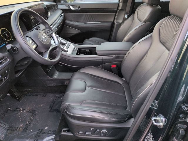 Check out this beautiful 2025 Hyundai Palisade a truly greatSUV with the following amenities Option Group 01, 12 Speakers, 3rd row seats: split-bench, 4-Wheel Disc Brakes, ABS brakes, Air Conditioning, All-Season Fitted Liners, Alloy wheels, AM/FM radio: SiriusXM, Apple CarPlay & Android Auto, Auto High-beam Headlights, Auto-dimming door mirrors, Auto-dimming Rear-View mirror, Auto-leveling suspension, Automatic temperature control, Brake assist, Bumpers: body-color, Cargo Blocks, Cargo Cover, Cargo Tray, Carpeted Floor Mats, Compass, Delay-off headlights, Driver door bin, Driver vanity mirror, Dual front impact airbags, Dual front side impact airbags, Electronic Stability Control, Emergency communication system, Exterior Parking Camera Rear, First Aid Kit, Four wheel independent suspension, Front anti-roll bar, Front Bucket Seats, Front Center Armrest, Front dual zone A/C, Front reading lights, Fully automatic headlights, Garage door transmitter: HomeLink, harman/kardon® Speakers, Heads-Up Display, Heated & Ventilated Front Bucket Seats, Heated door mirrors, Heated front seats, Heated rear seats, Heated steering wheel, Illuminated entry, Knee airbag, Leather steering wheel, Low tire pressure warning, Memory seat, Navigation System, Occupant sensing airbag, Outside temperature display, Overhead airbag, Overhead console, Panic alarm, Passenger door bin, Passenger vanity mirror, Power door mirrors, Power driver seat, Power Liftgate, Power moonroof, Power passenger seat, Power steering, Power windows, Premium Nappa Leather Seat Trim, Radio data system, Radio: AM/FM/MP3 Premium Audio System, Rain sensing wipers, Rear air conditioning, Rear anti-roll bar, Rear audio controls, Rear reading lights, Rear side impact airbag, Rear window defroster, Rear window wiper, Reclining 3rd row seat, Remote keyless entry, Security system, Speed control, Speed-sensing steering, Split folding rear seat, Spoiler, Steering wheel mounted audio controls, Tachometer, Telescoping steering wheel, Tilt steering wheel, Traction control, Trip computer, Turn signal indicator mirrors, Variably intermittent wipers, Ventilated front seats, Ventilated rear seats, Wheel Locks, and Wheels: 20 x 7.5J Calligraphy Exclusive Alloy.
