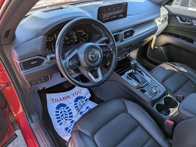 Check out this great 2025 Mazda CX-5 a positively terrific-lookingSUV with the following amenities AppLink/Apple CarPlay and Android Auto, Auto-dimming Rear-View mirror, Heads-Up Display, Heated front seats, Heated rear seats, Heated steering wheel, Heated/Ventilated Front Bucket Seats, Infotainment System Voice Command, Mazda Navigation System, Nappa Leather Seat Trim, Navigation system: MAZDA CONNECT, Power Liftgate, Power moonroof, Soul Red Crystal Metallic Paint, Turn signal indicator mirrors, Ventilated front seats, 10 Speakers, 4-Wheel Disc Brakes, ABS brakes, Air Conditioning, All-Weather Floor Mats, Alloy wheels, AM/FM radio: SiriusXM, Auto High-beam Headlights, Automatic temperature control, Brake assist, Bumpers: body-color, Delay-off headlights, Driver door bin, Driver vanity mirror, Dual front impact airbags, Dual front side impact airbags, E911 Automatic Emergency Notification, Electronic Stability Control, Emergency communication system: MAZDA CONNECT, First Aid Kit, Four wheel independent suspension, Front anti-roll bar, Front Bucket Seats, Front Center Armrest w/Storage, Front dual zone A/C, Front reading lights, Fully automatic headlights, Garage door transmitter: HomeLink, Genuine wood dashboard insert, Genuine wood door panel insert, Heated door mirrors, Illuminated entry, Leather Shift Knob, Leather steering wheel, Low tire pressure warning, Memory seat, Multifunction Commander Control, Occupant sensing airbag, Outside temperature display, Overhead airbag, Overhead console, Pandora, Panic alarm, Passenger door bin, Passenger vanity mirror, Power door mirrors, Power driver seat, Power passenger seat, Power steering, Power windows, Radio Broadcast Data System Program Information, Radio data system, Radio: AM/FM/HD Audio System, Rain sensing wipers, Rear anti-roll bar, Rear Bumper Guard, Rear reading lights, Rear seat center armrest, Rear window defroster, Rear window wiper, Remote keyless entry, SMS Text Msg Audio Delivery & Reply, Speed control, Speed-sensing steering, Split folding rear seat, Spoiler, Steering wheel mounted audio controls, Tachometer, Telescoping steering wheel, Tilt steering wheel, Traction control, Trip computer, Variably intermittent wipers, Wheel Locks, and Wheels: 19 x 7J Aluminum Alloy.