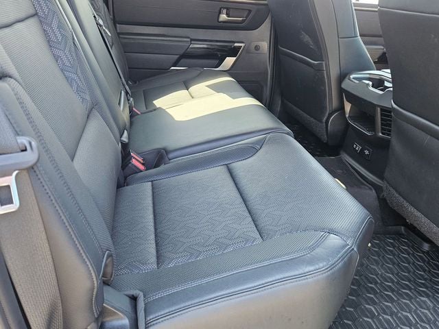 Check out this good-looking 2022 Toyota Tundra Hybrid a positively gorgeousTruck with the following amenities Alloy wheels, Automatic temperature control, Electronic Stability Control, Exterior Parking Camera Rear, Memory seat, Navigation System, Power driver seat, Security system, Speed control, Traction control, 20 x 8 Alloy Wheels, 3.31 Axle Ratio, 4-Wheel Disc Brakes, 9 Speakers, ABS brakes, Air Conditioning, AM/FM radio: SiriusXM, Apple CarPlay/Android Auto, Auto High-beam Headlights, Auto-dimming door mirrors, Auto-dimming Rear-View mirror, Brake assist, Bumpers: body-color, Delay-off headlights, Driver door bin, Driver vanity mirror, Dual front impact airbags, Dual front side impact airbags, Emergency communication system: Safety Connect with 1-year trial, Front anti-roll bar, Front Bucket Seats, Front Center Armrest, Front dual zone A/C, Front fog lights, Front reading lights, Front wheel independent suspension, Fully automatic headlights, Garage door transmitter: HomeLink, Heated & Ventilated Front Bucket Seats, Heated door mirrors, Heated front seats, Heated steering wheel, Illuminated entry, Knee airbag, Leather Shift Knob, Low tire pressure warning, Occupant sensing airbag, Outside temperature display, Overhead airbag, Overhead console, Panic alarm, Passenger door bin, Passenger vanity mirror, Power door mirrors, Power passenger seat, Power steering, Power windows, Radio data system, Radio: Audio Plus, Rear reading lights, Rear seat center armrest, Rear step bumper, Rear window defroster, Remote keyless entry, SofTex Seat Trim, Speed-sensing steering, Split folding rear seat, Steering wheel mounted audio controls, Tachometer, Telescoping steering wheel, Tilt steering wheel, Trip computer, Turn signal indicator mirrors, Variably intermittent wipers, Ventilated front seats, and Voltmeter.